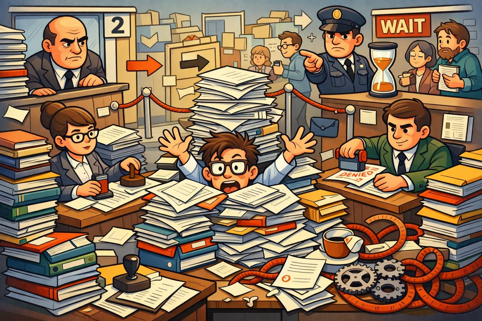 Example: The small business struggled because of the heavy bureaucracy and slow approvals.