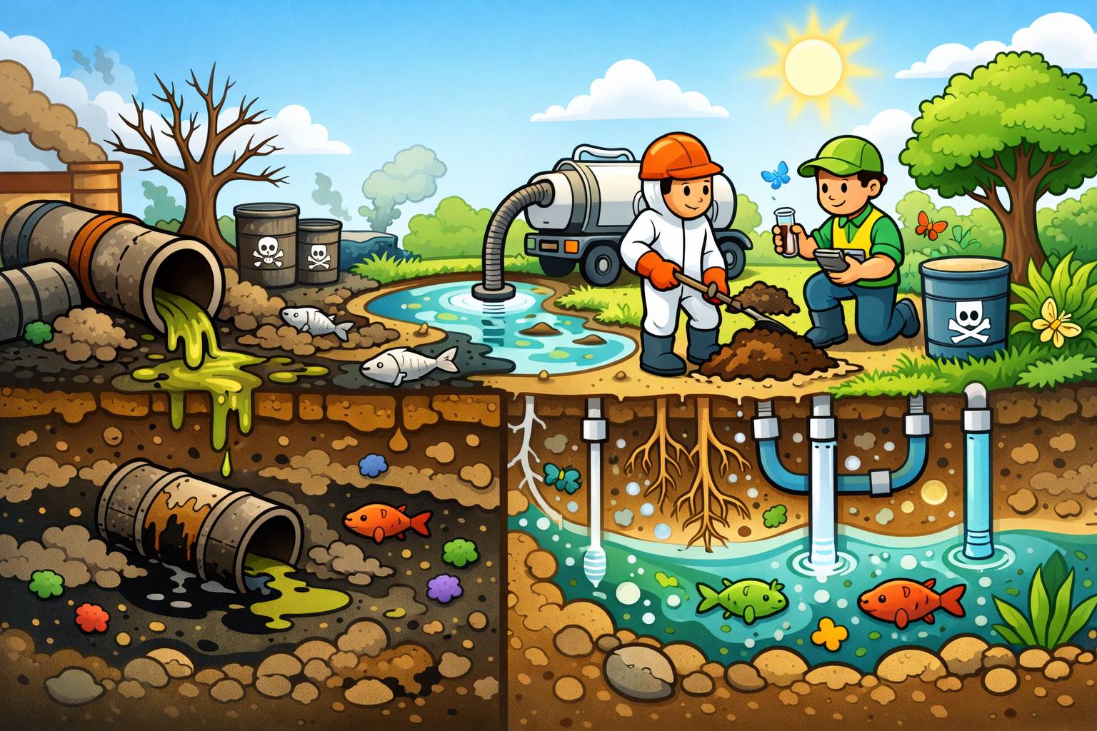 Example: The company started environmental remediation to clean up the polluted riverbank.