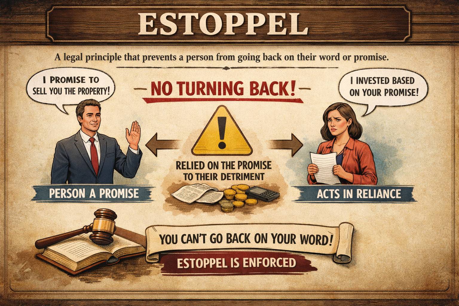 Example: Because of estoppel, he could not deny the promise after the other party relied on it.