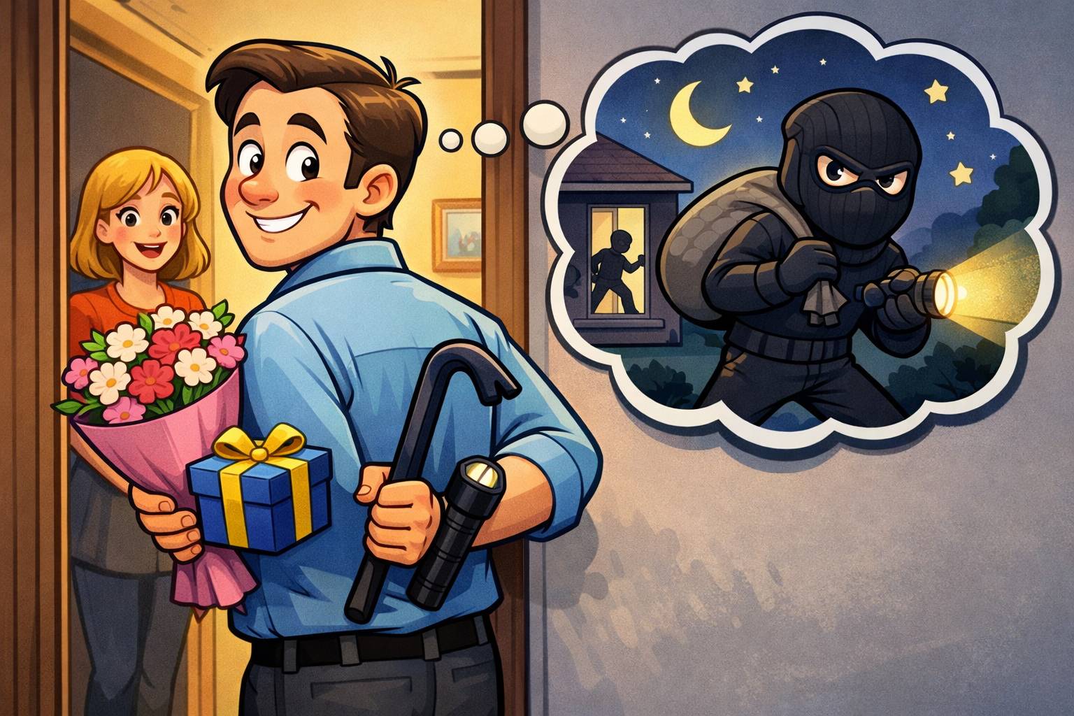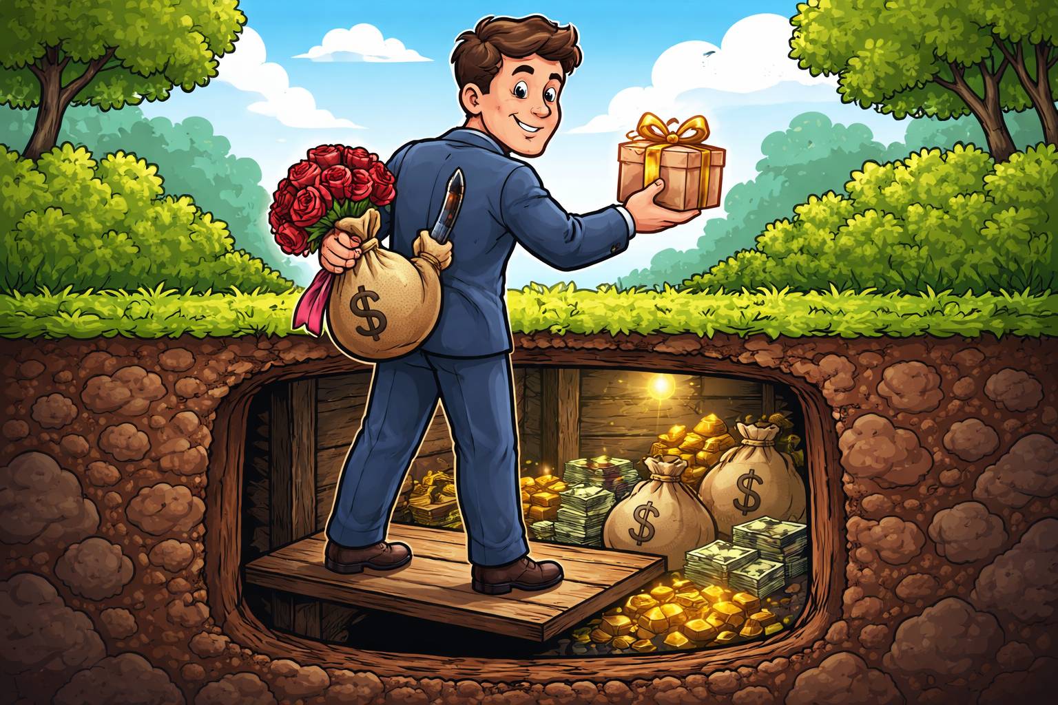Example: He offered help, but she suspected an ulterior motive.