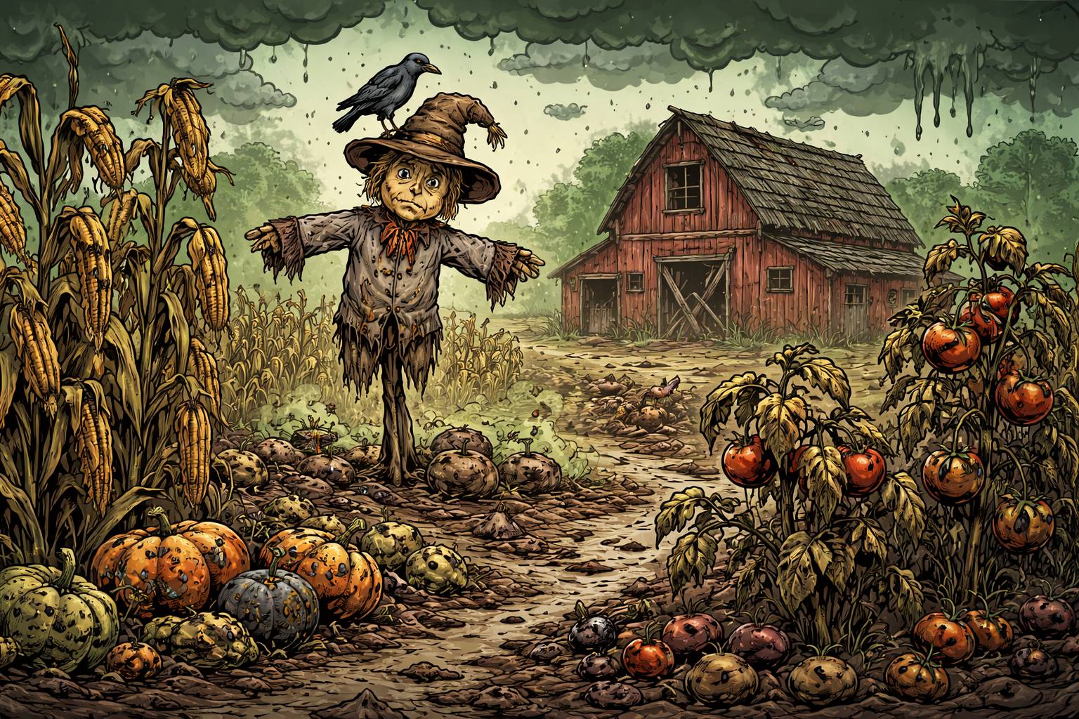 Example: The sudden drought threatened to blight the entire crop before harvest.