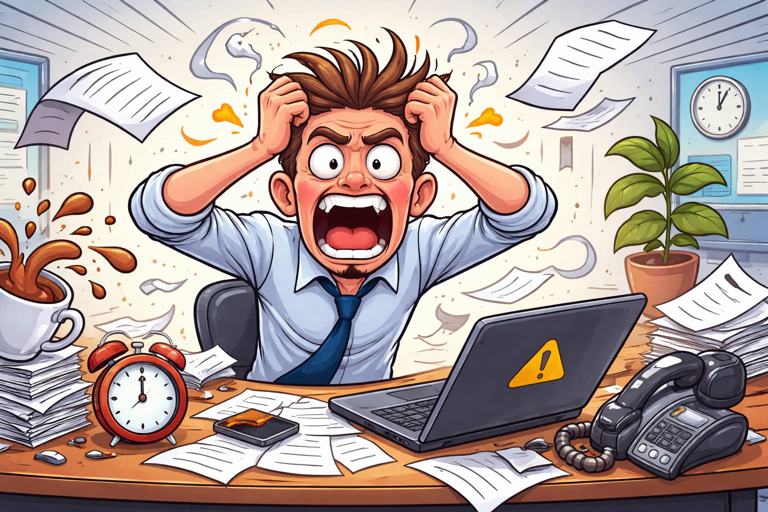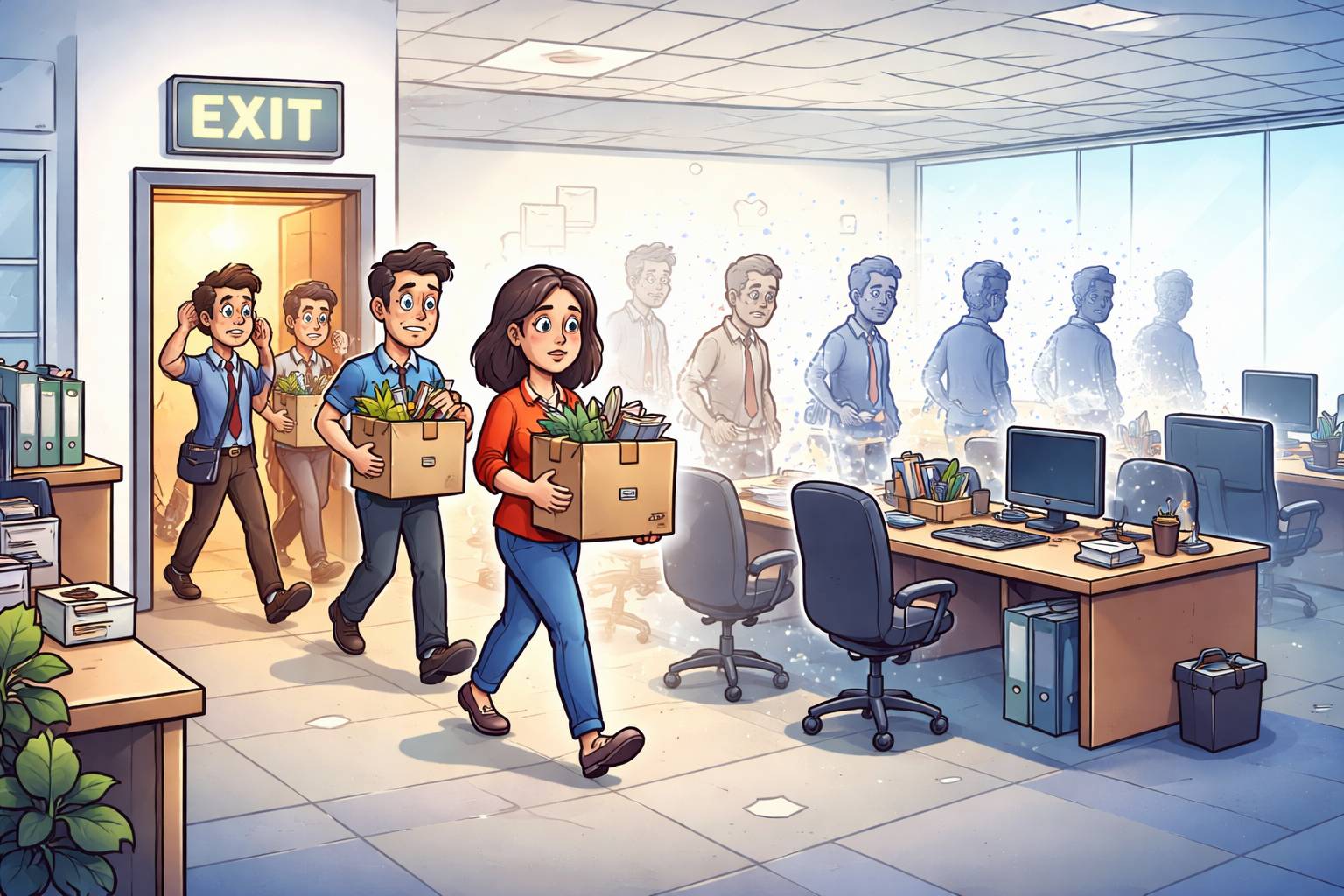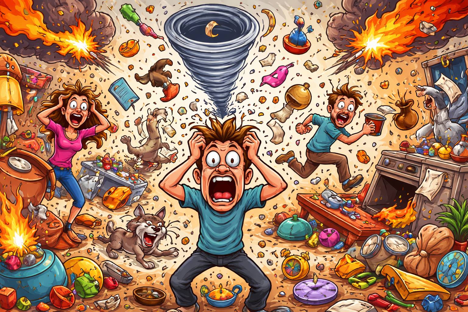 Example: After the sudden announcement, the office fell into chaos as everyone rushed for updates.