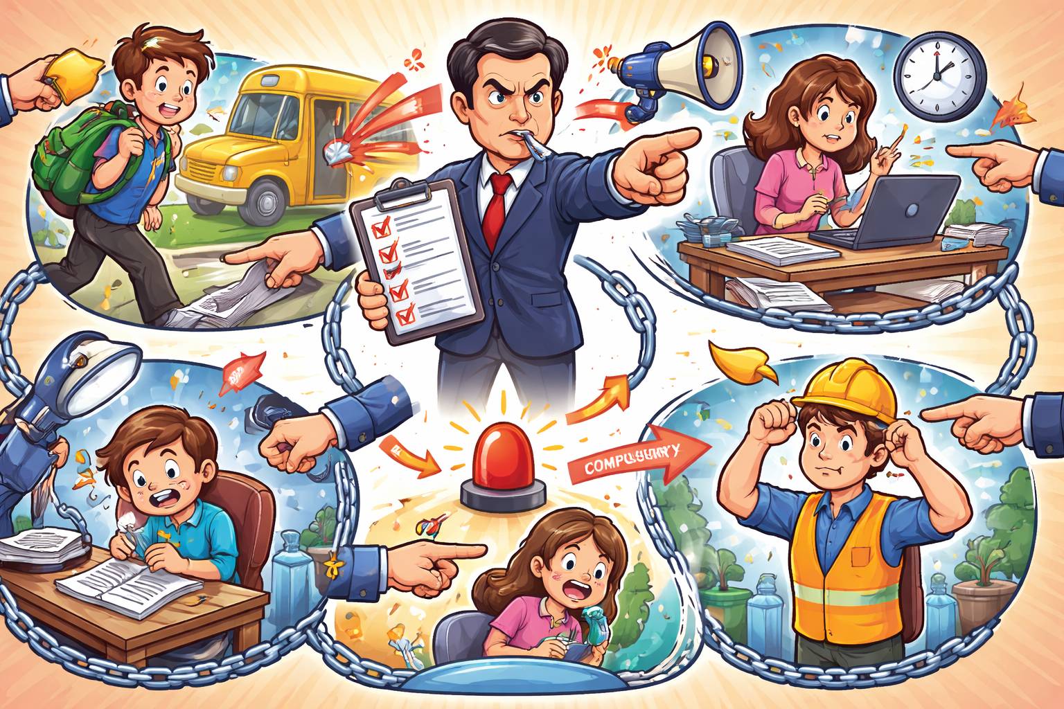 Example: The officious clerk kept giving unwanted instructions to everyone in the line.