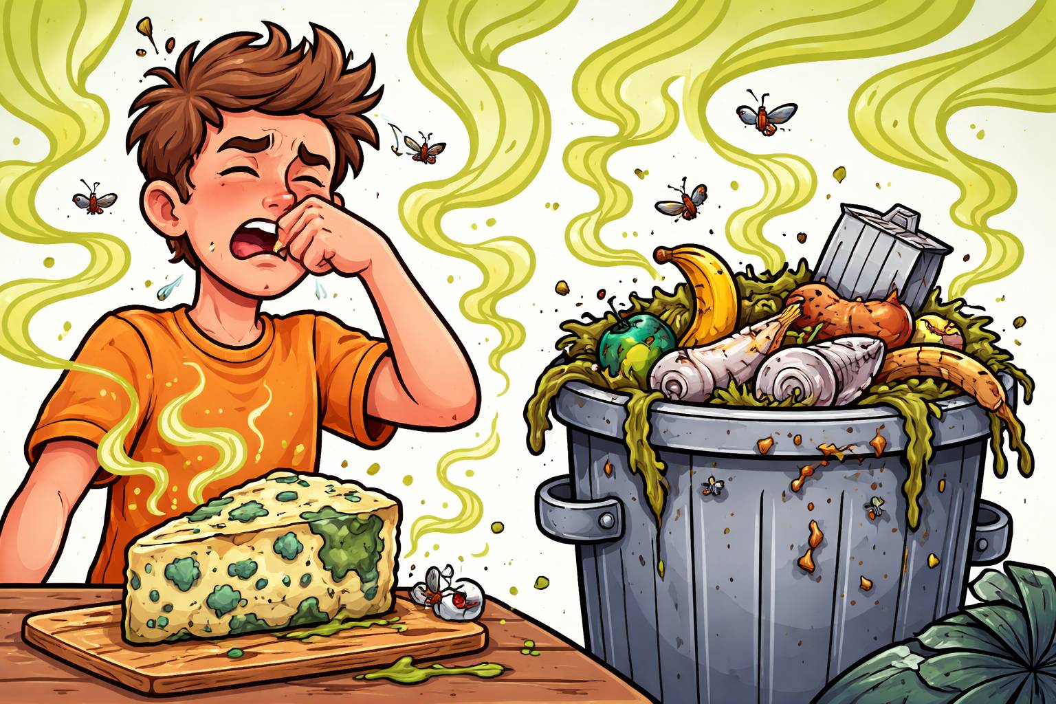 Example: The pungent smell of garlic filled the entire kitchen.