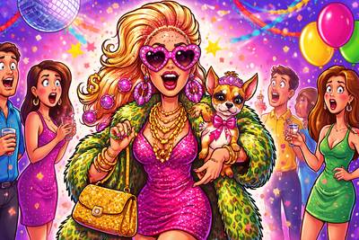 Example: She wore a gaudy dress covered with too many bright colors and shiny stones.