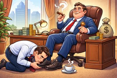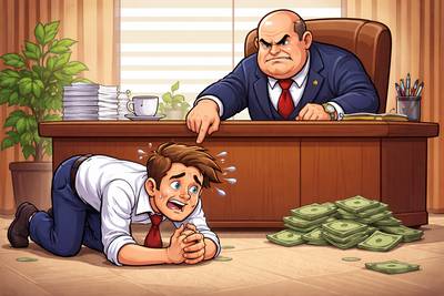 Example: He had to grovel before the corrupt officer to get his file cleared.