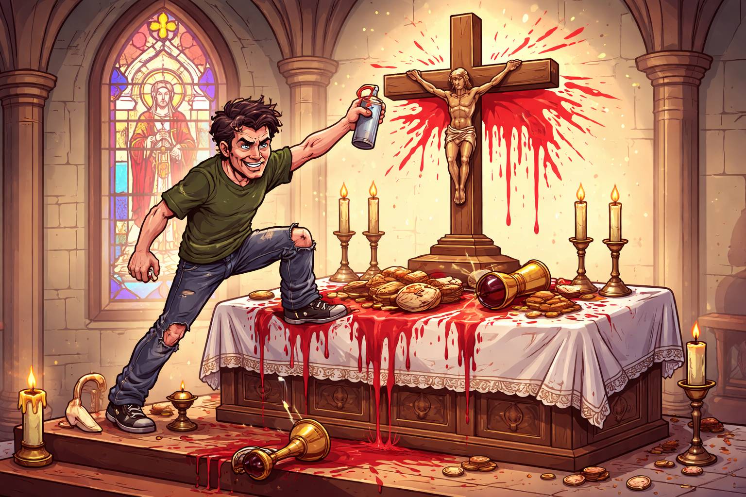 Example: Putting a coffee cup on the holy book was considered a sacrilege by the monks.