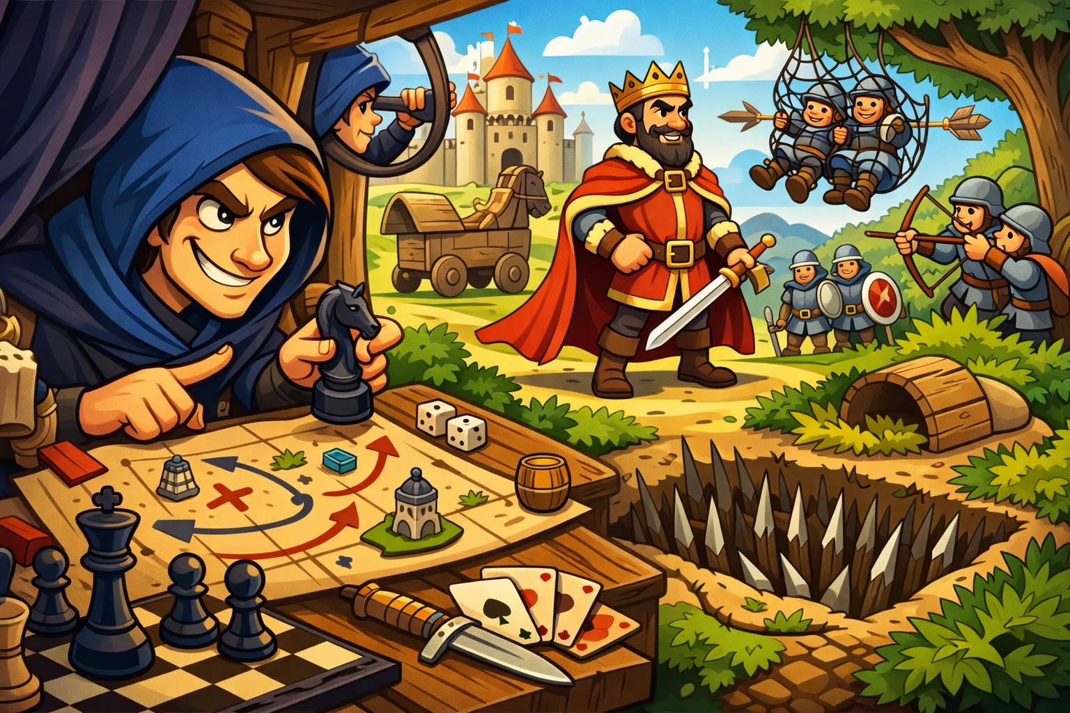 Example: His clever stratagem allowed him to win the chess match against a much stronger opponent.