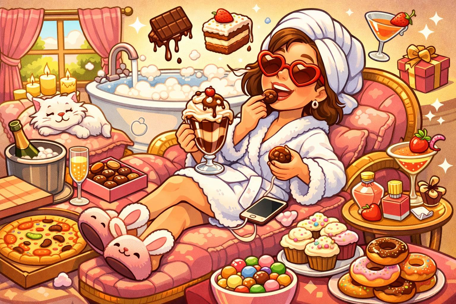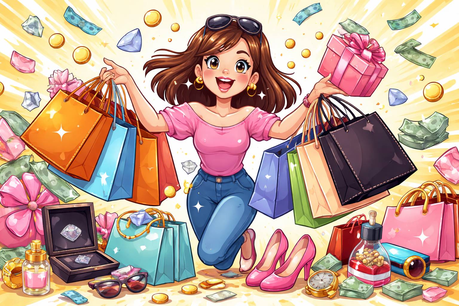 Example: She decided to splurge on a new phone after getting her bonus.
