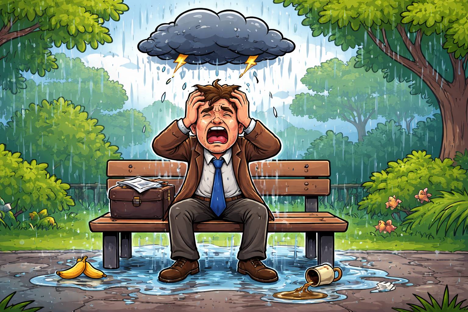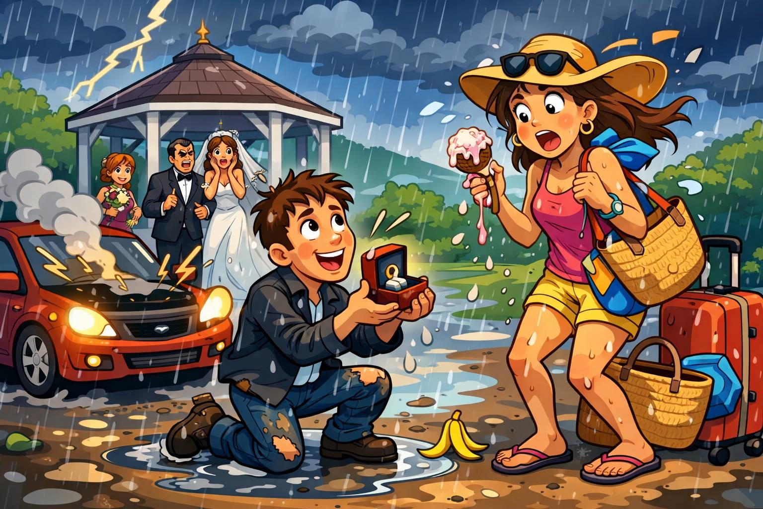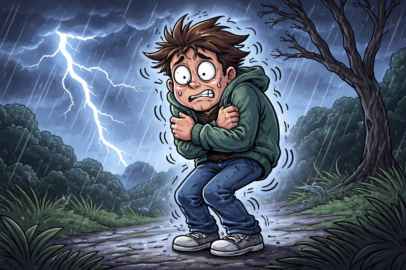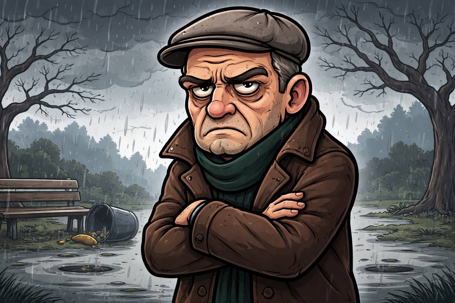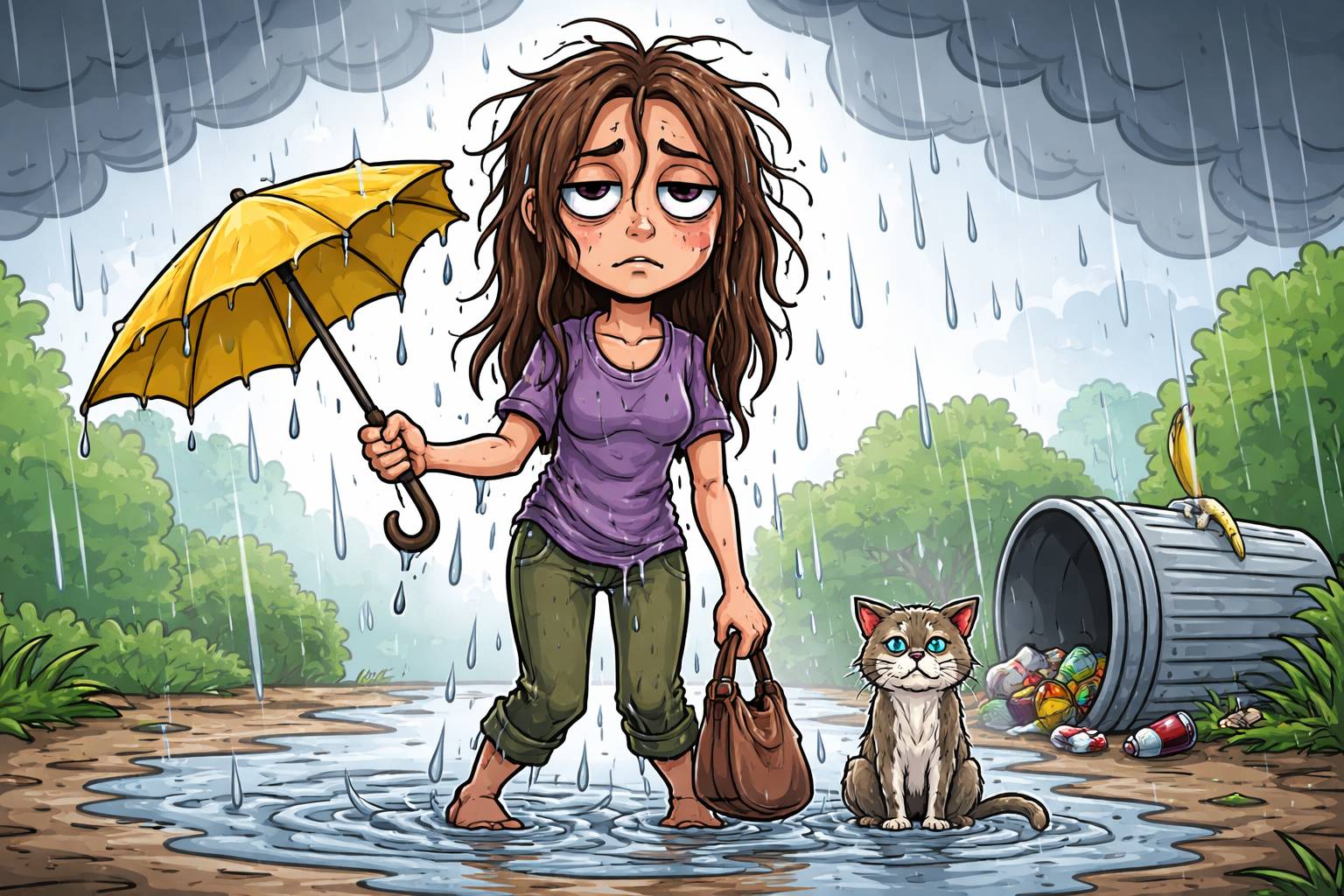 Example: He arrived bedraggled after walking through the heavy rain.