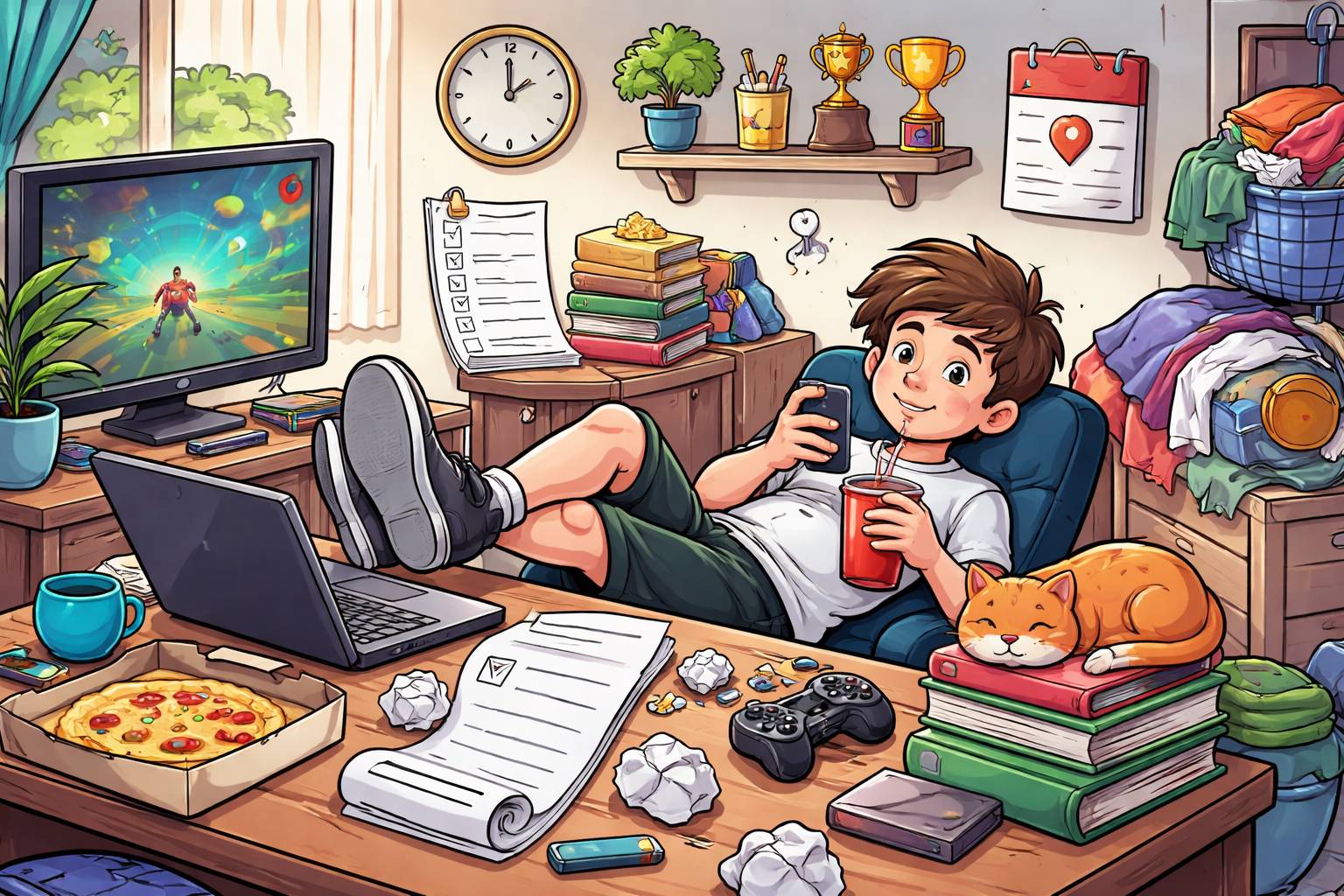 Example: He tends to procrastinate and finishes assignments at the last minute.