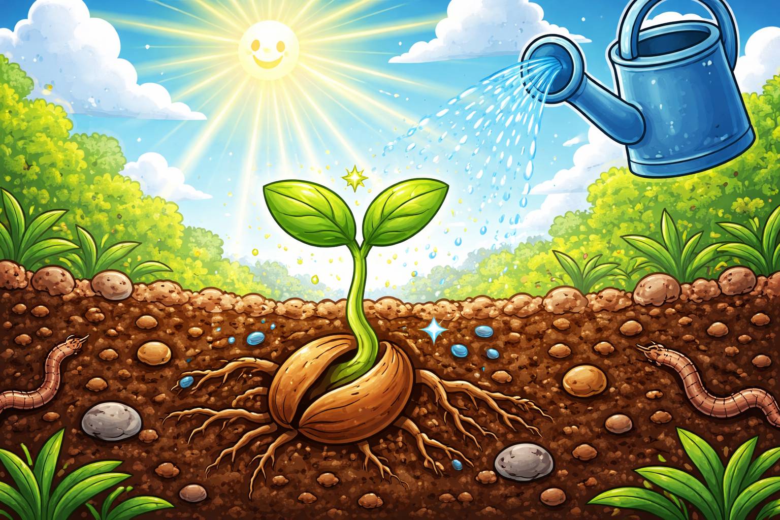 Example: The seeds will germinate quickly in warm, moist soil.