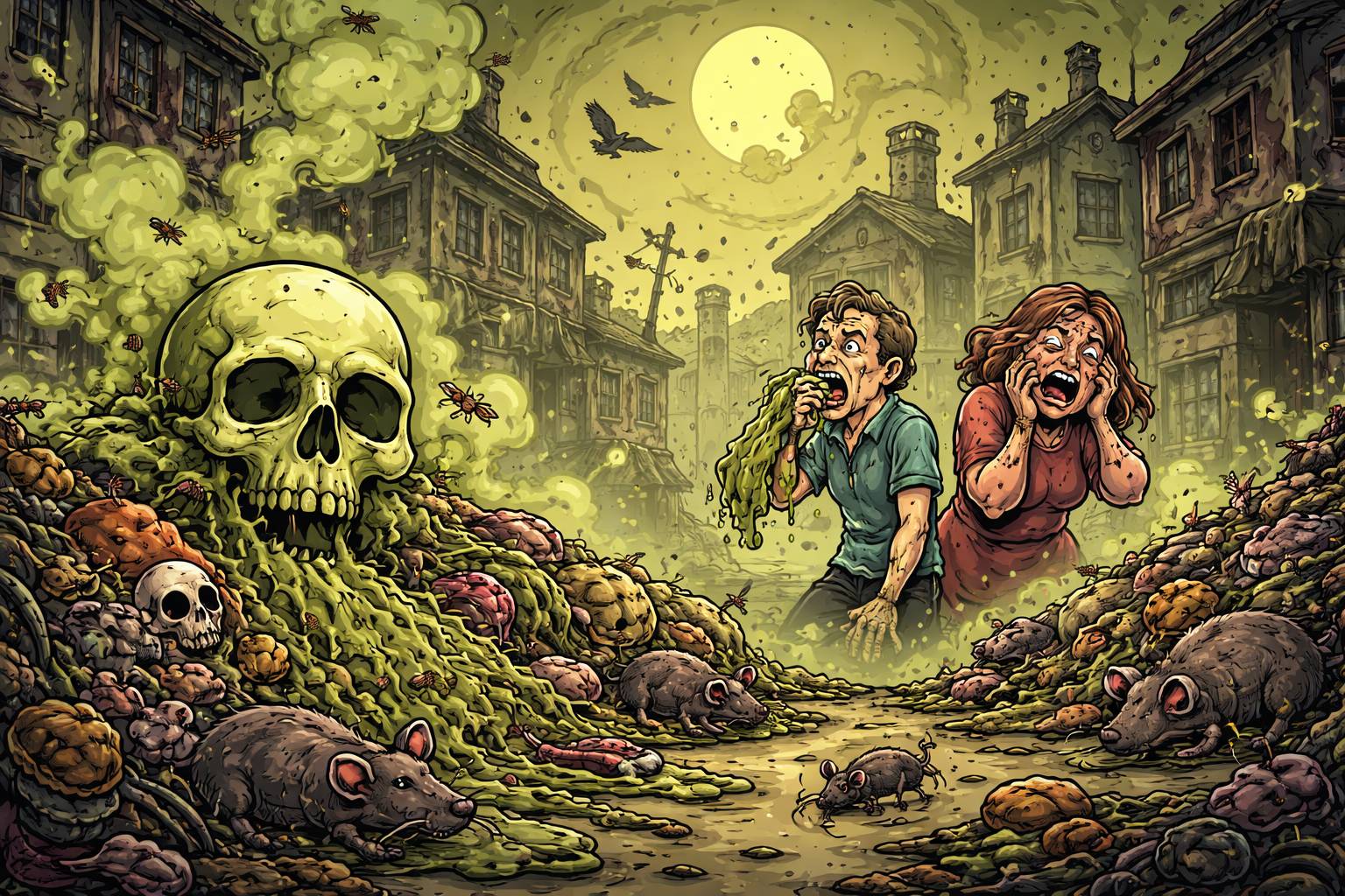 Example: A miasma of smoke and garbage hung over the street.