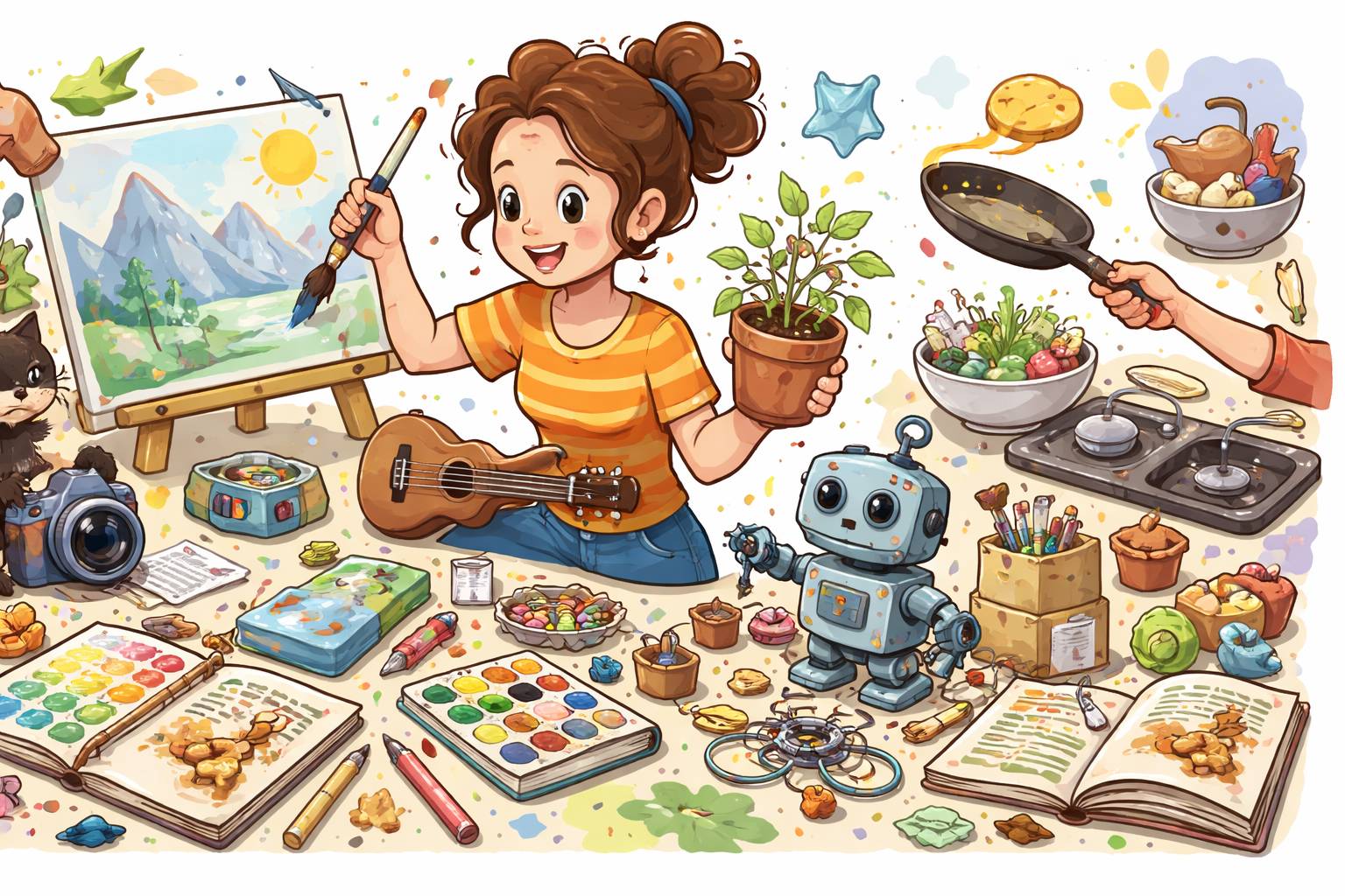 Example: The room was a hodgepodge of old furniture and modern gadgets.