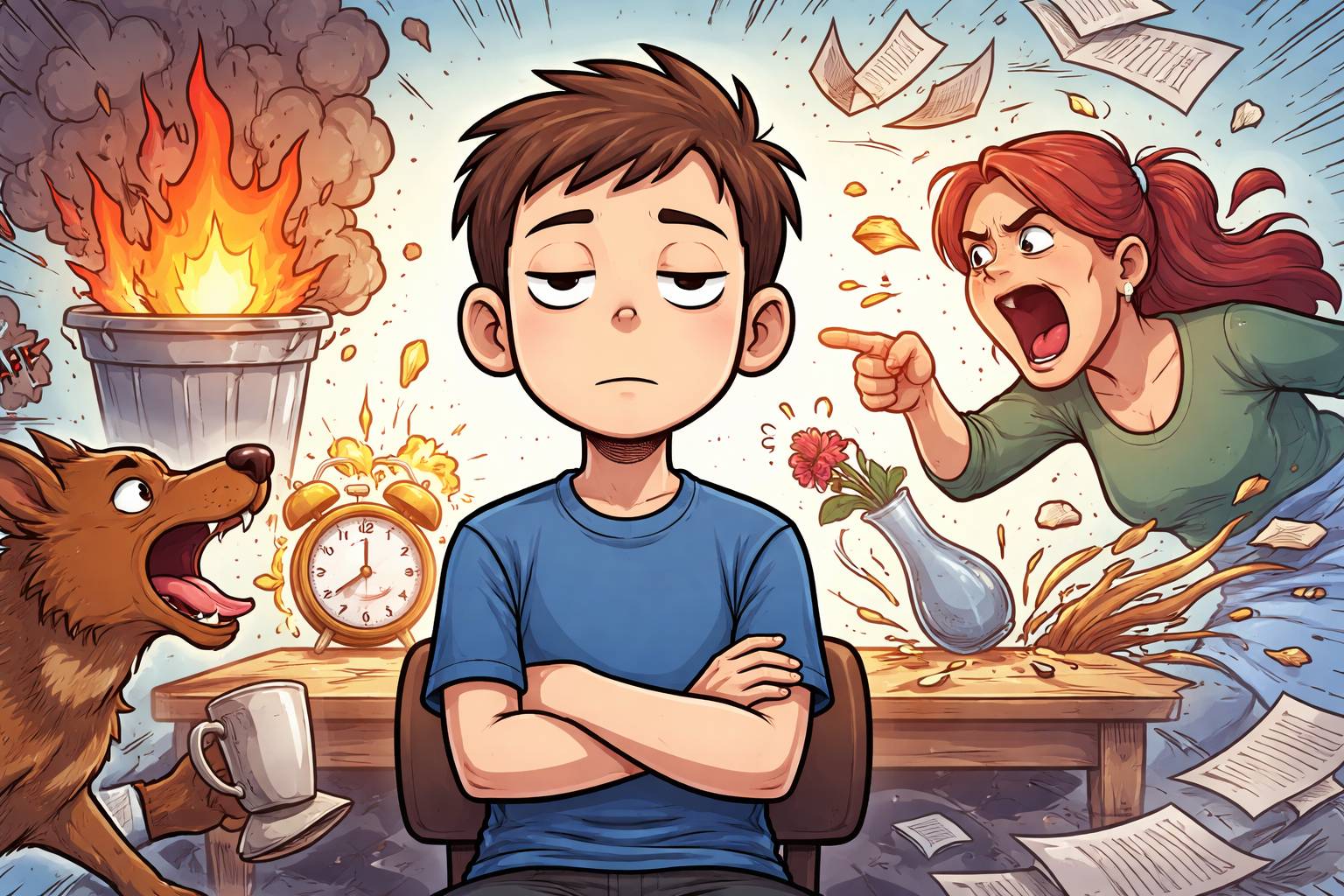 Antonyms: Panic, Agitation, Nervousness, Hysteria