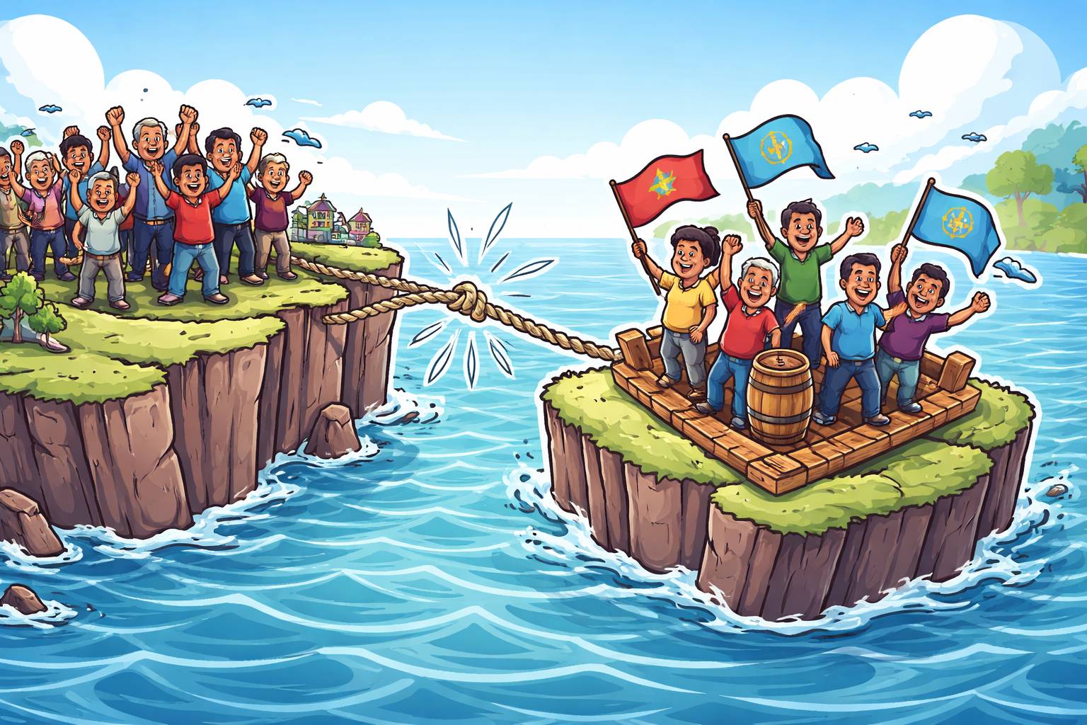 Example: The contiguity of the two villages helped them share roads, markets, and services easily.