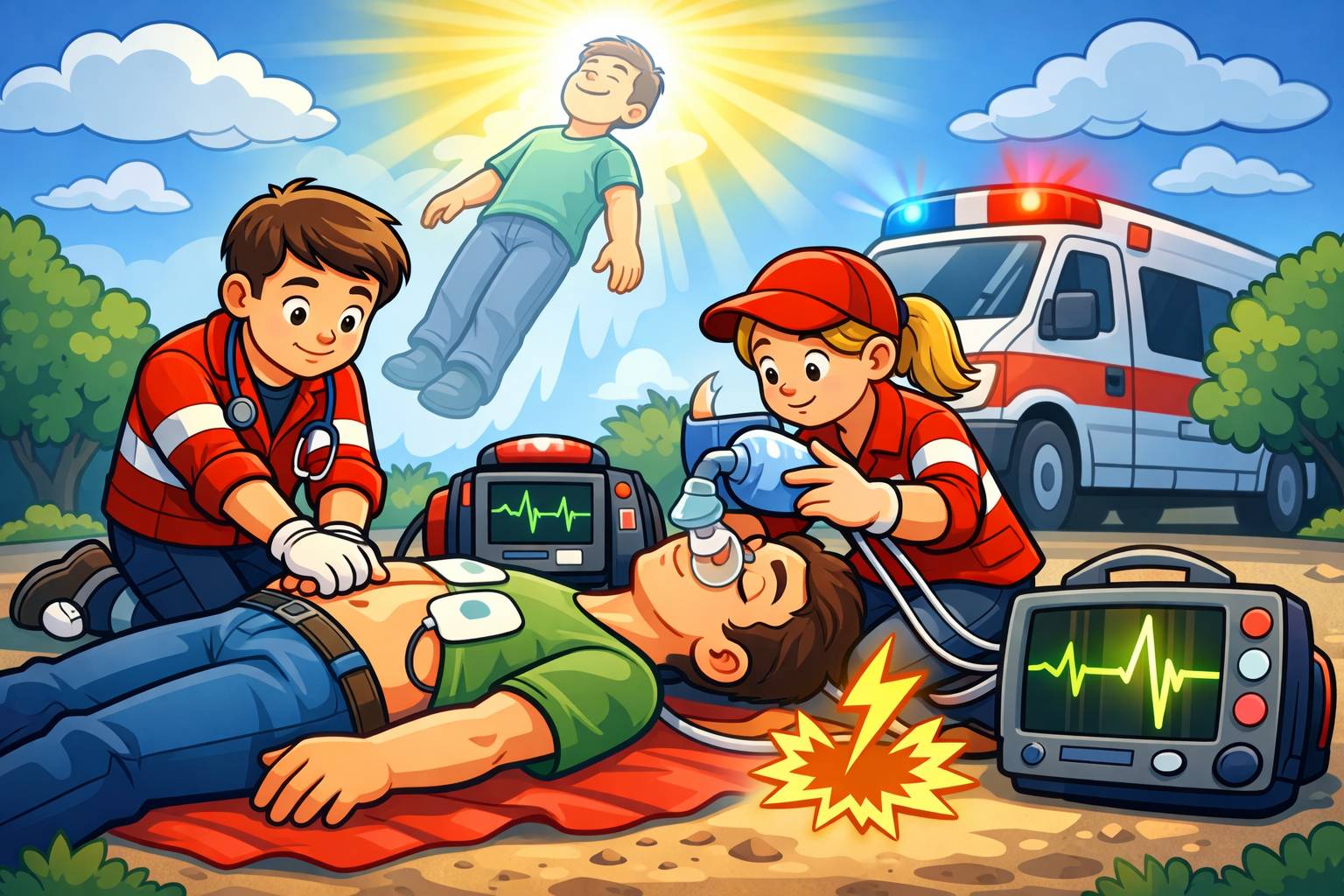 Example: The paramedics worked quickly to resuscitate the patient after the collapse.