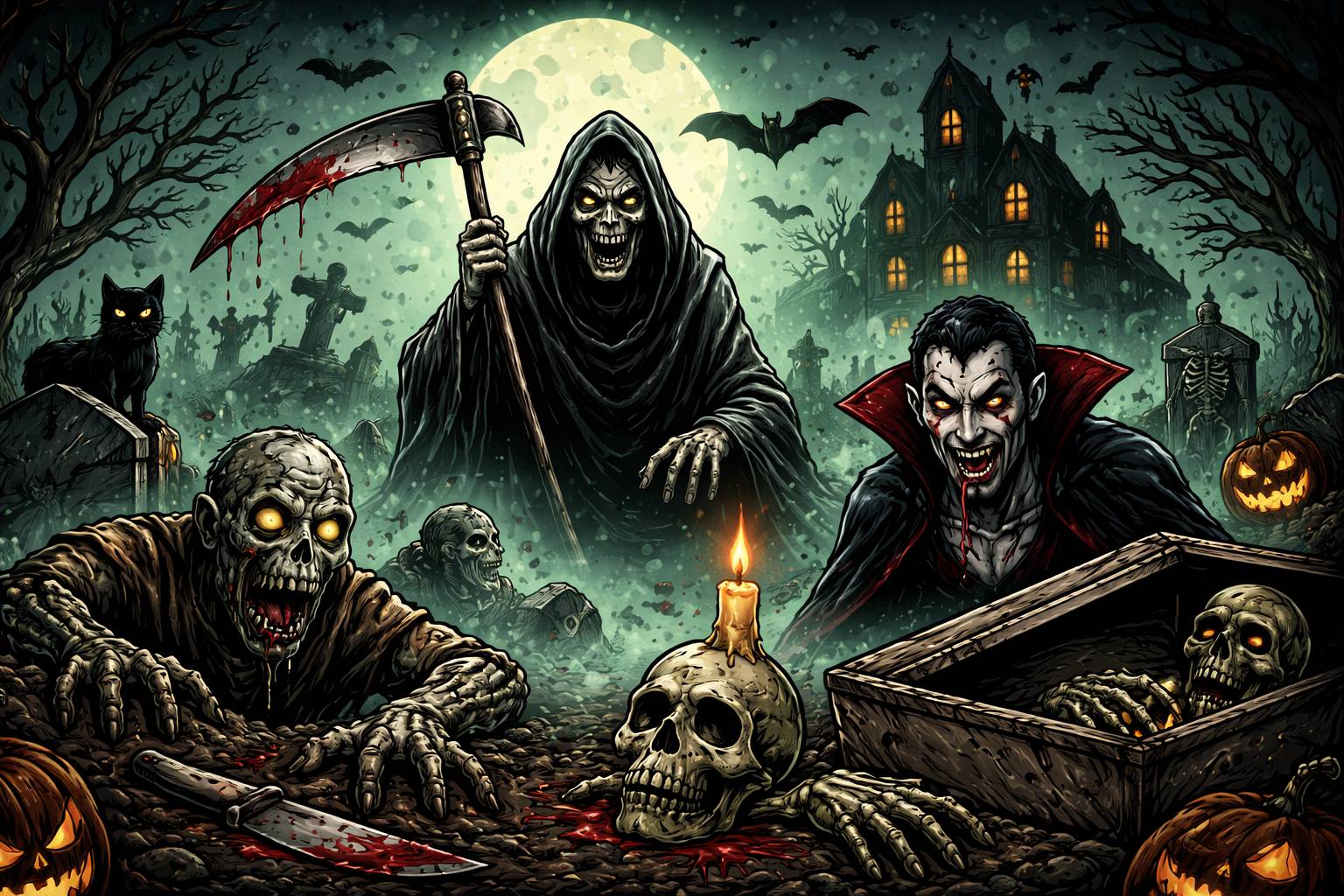 Synonyms: Grim, Ghoulish, Morbid, Ghastly