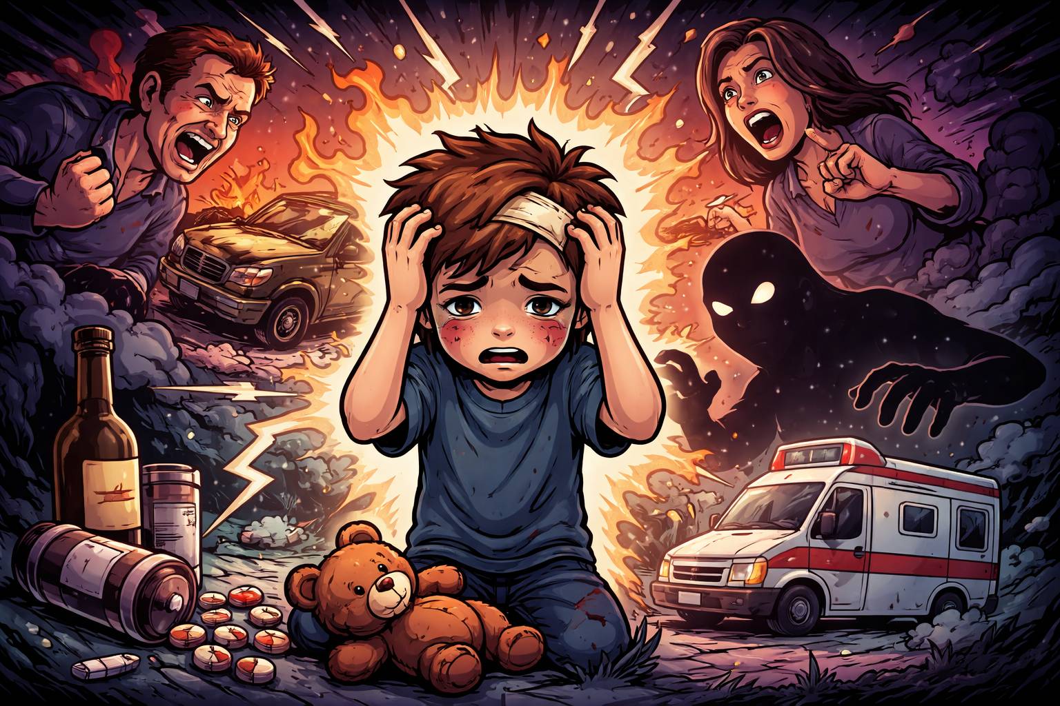 Example: The accident left him with lasting trauma and fear of driving.