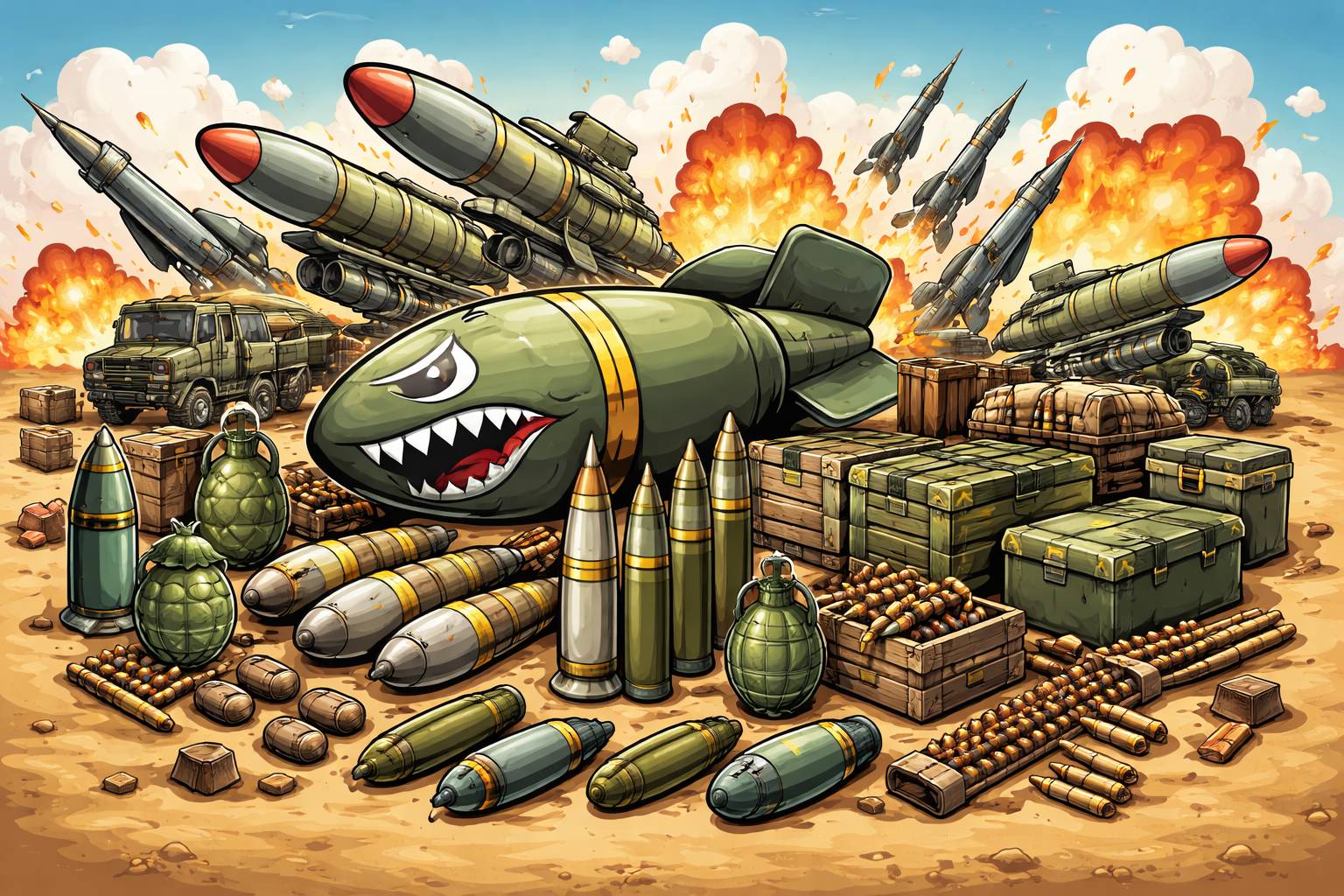 Example: The army transported ordnance to the border base for emergency use.