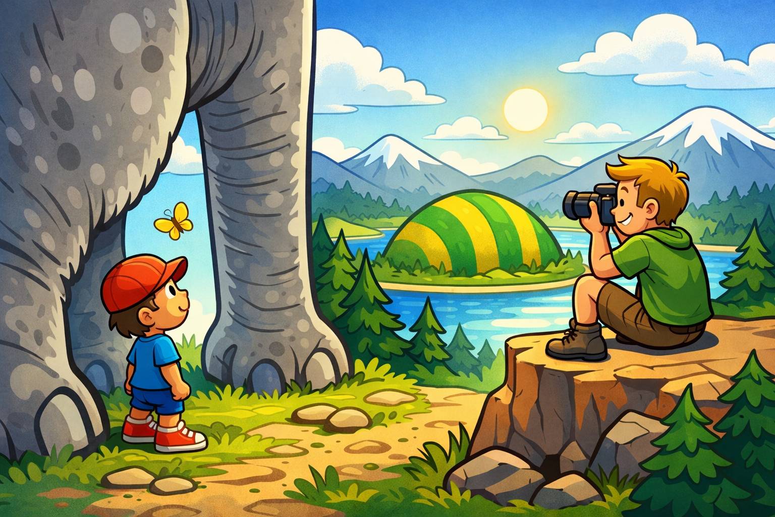 Example: From the hilltop vantage, we could see the entire valley clearly.